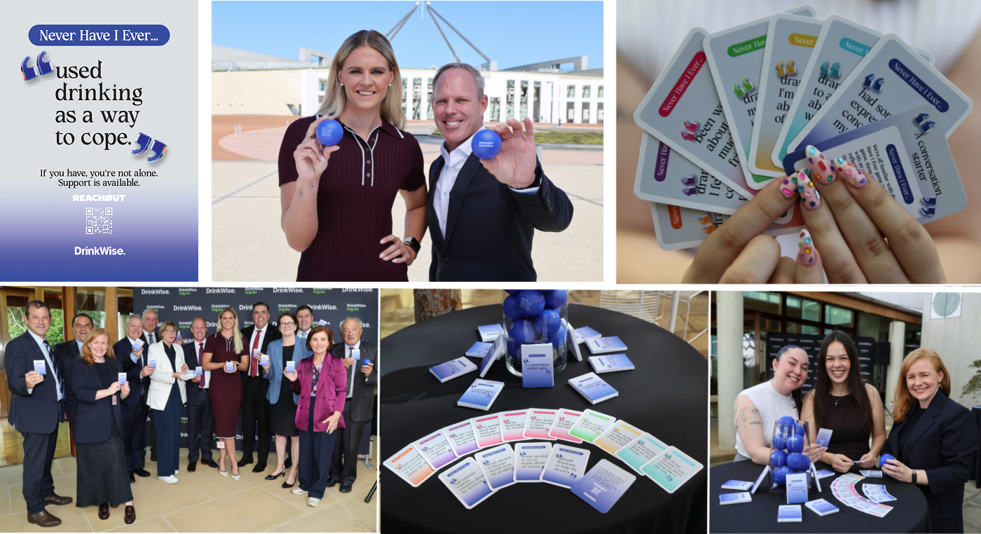 Never Have I Ever was officially launched on Tuesday 31 March 2026 at Parliament House in Canberra by the Speaker of the House of Representatives, the Hon Milton Dick MP, alongside DrinkWise Chief Executive Officer Simon Strahan, ReachOut’s Tessa Mithieux and Olympic gold medallist Shayna Jack OAM.